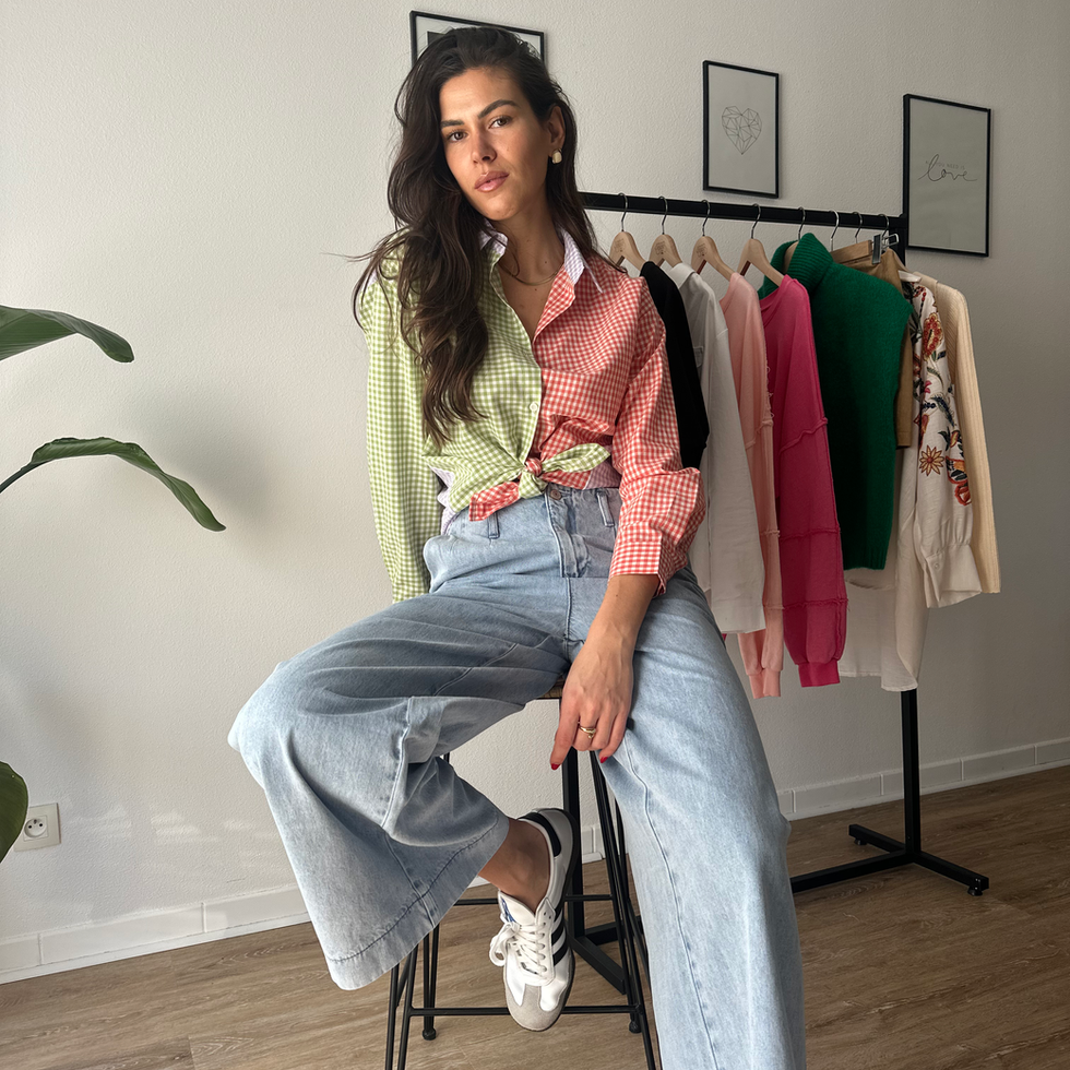 Chemise à carreaux manches longues avec boutonnage sur l’avant.