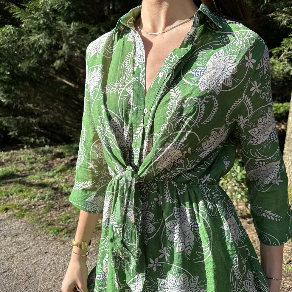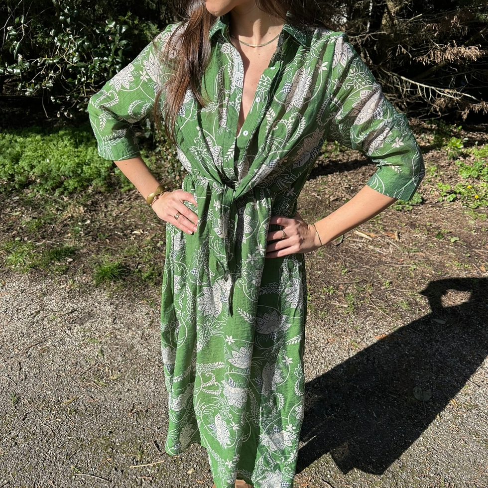 Robe longue légère doublée à manches longues, à jolis motifs. Réel coup de coeur de cette collection.
